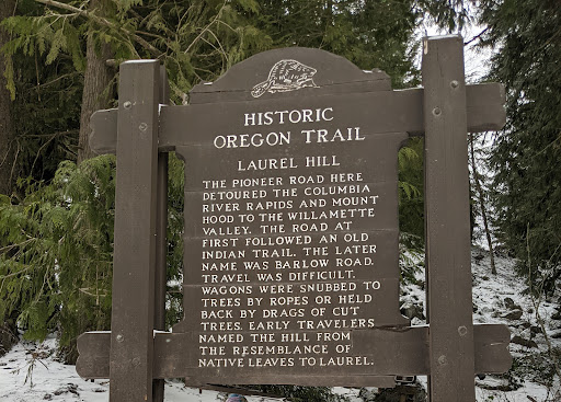 Read moreHistoric view of the Laurel Hill chute #3. One of five chutes used along the famous Barlow Road. (Aka: the Oregon Trail)!! This was the steepest and roughest portion of the 2,000 mile Oregon trail. The wagons were slowly lowered down the chutes by ropes, logs lashed to the rear wheels or at times a cut tree including branches tied behind the wagons. Tough section of road and considering the toll on the road was a lofty $5 per wagon it's no wonder it appears in journals...
