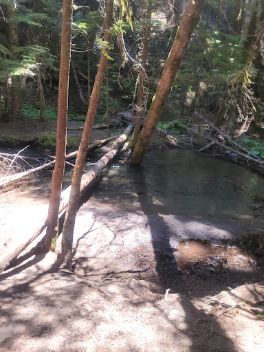 Clean and minimal human activities, if you like those green desktop posters frequented the Linux distros then this is the real life location where you could soaked it all in. If it rained in any substantial amount just prior to your visit then it might be a risk of flash floods looking at the logs washed down. Mud is a constant. Trail head was blocked by down trees of significant size and 30 feet of the trail was washed out just beyond the waterfall. No path was re-established. It's pretty thick forest. Mushrooms and insects abound. Wear jeans if you are not fond of scratches from branches or potential allergies. One picnic table there alone and port o potty available just off the parking lot. Good view of the peak as you drive toward the parking just off the...