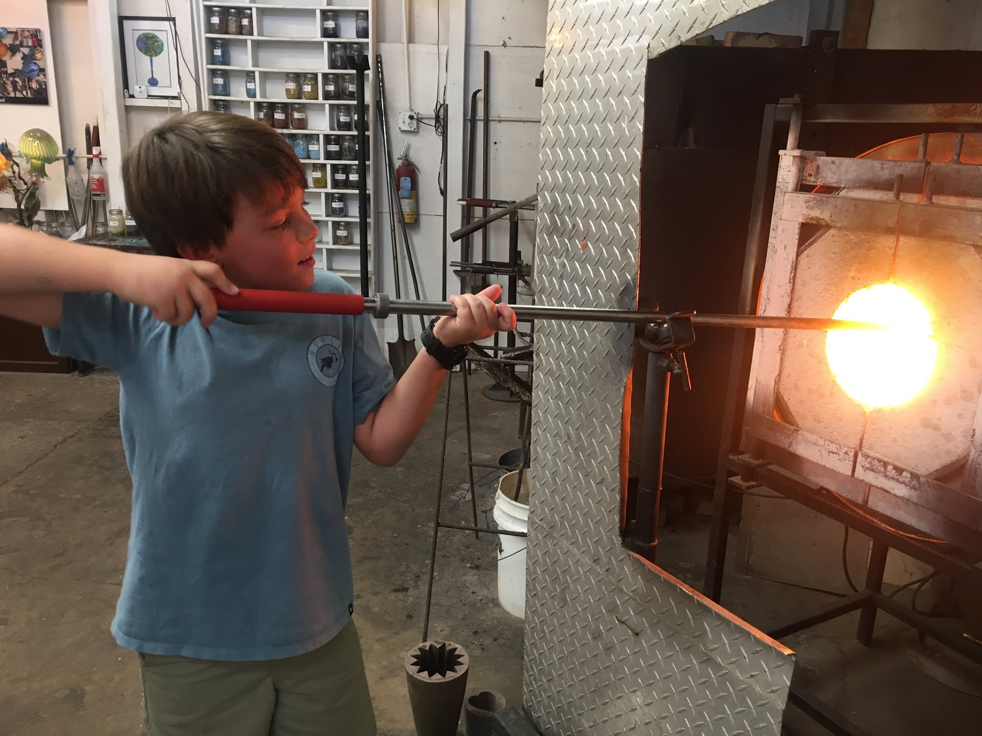 That's the working studio. It's also the classroom and the display area. The owner welcomed us in as soon as we stepped in even though he had about 6 others already there. The glass was outstanding itself, but Saul just couldn't let us browse without giving a demonstration.