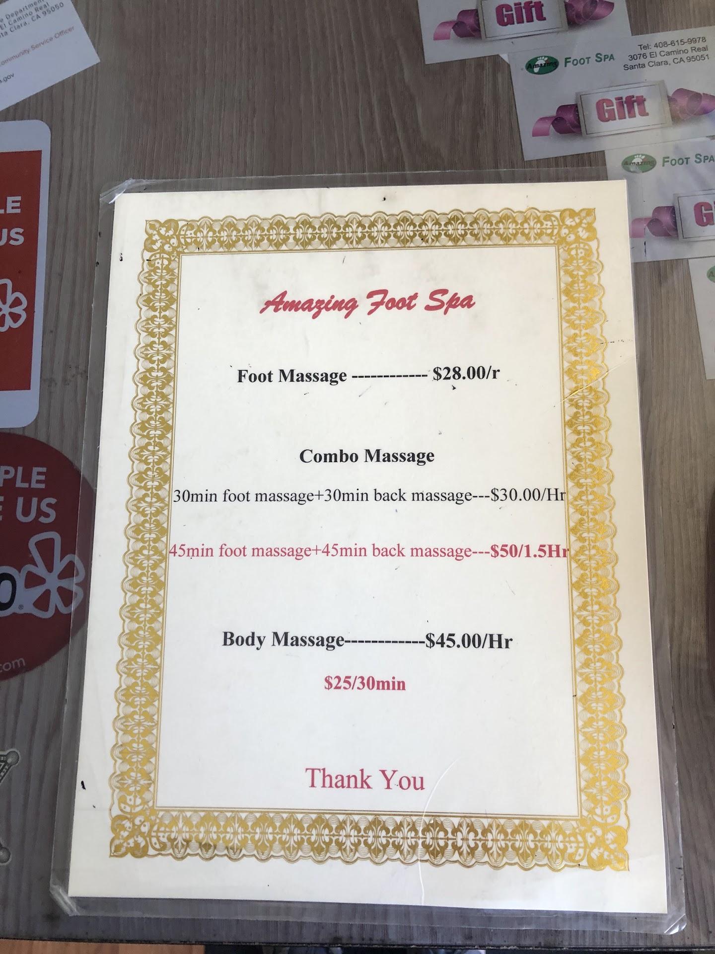 This is my go-to place for "foot" massages. It is important to understand what you get at most of these places is a standard routine that works for most people most of the time. They do start with the feet but they wind up doing a clothes-on "full body" - ish massage. One thing to note, is the standard practice with many of the male massages is to undo your bra and and sort of hike up most of your shirt and then do the hot stones on your back. If you are a female uncomfortable with this then ask for a woman. When my husband and I go, they usually gives us someone of the opposite gender. No idea why. But you can ask. The women tend to not go quite as deep too. If you want a massage that caters to your needs in any way then go for the body massage which is clothes off and they can really see what they are doing. There is still sometimes a language gap. If you are hurt/sore in any way, go to a place that does not advertise itself as a foot...