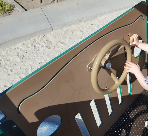 Ok I'll go a 5☆ on this miss I lament the days when the library wasn't there the park had an epic grandiose feel. But alas here and now it's a great park very large field perfect for kites and large meet ups, practice sports. Bathrooms are located over in the sand trap where there's a toddler side with appropriate size fun, swings, crawling structure and a young child side with decent size crawl and climb structure and swings. There are picnic tables and grills. The close proximity to Safeway and the rest of Rivermark plaza's food make it easy to have fun and eat everything is walking distance also a good place to spend lunch if in the neighborhood. I had a hell of alot of fun there when my son was sniffles sheds a tear, that age. Would definitely recommend, so get out and enjoy before scarecrow gets a brain and moves on to the next stages...