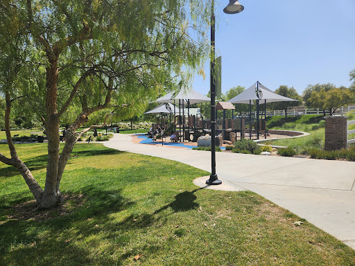 Read moreNice community park in Santa Clarita overlooking the Santa Clara River and trail children's play area, large grassy area covered pavilion for use by reservation. restrooms on site, few picnic tables outside of pavilion, barbecues are available to use also a hot ash...