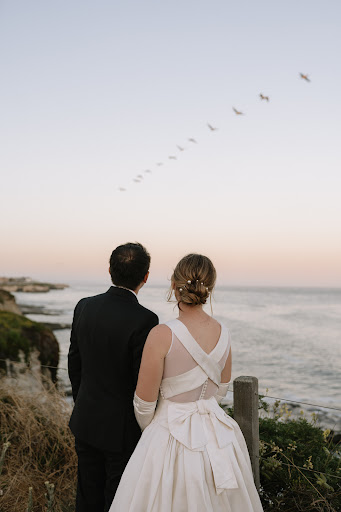 The Seymour Center was a fantastic venue for our wedding – it had the perfect mix of stunning ocean views for our outdoor ceremony and a unique indoor reception space featuring marine exhibits. We were lucky that between booking and the time of our wedding they renovated the La Feliz reception room and replaced the older blue carpet with a beautiful hardwood floor – a dramatically superior improvement! Important things to note: Since this center is for public education, the arrangement of the exhibit hall space can change after you book (be flexible on reception set-up) and you can’t set up for your wedding until after it closes to the public at 4pm. This would likely not be a good venue for those wanting elaborate ceremony decorations or reception set-up because of this time crunch. This rule also makes it absolutely crucial to hire vendors who are familiar with the space and its cleaning rules. However, I would’ve liked a better area for guests to mingle and wait out of the way other than the parking lot in front of the center. It would be nice if they offered a ‘buy-out’ option so that we could close it even an hour earlier to allow more time for set-up, especially since there was less than 5 people in the center during that final hour. In addition, several significant features were separate costs outside of the packages such as reception lighting, storing items at the venue in advance, and a ‘get-ready’ room – so budget accordingly. Emily and her team are very kind and accommodating with answering all of our questions throughout planning and we were able to coordinate around these constrictions with their help. Our wedding day went incredibly smoothly and we had such a positive experience, and you truly cannot beat hearing ocean waves as you walk down the aisle to your wedding. Would highly recommend the Seymour Center if you are looking for a memorable and unique venue!