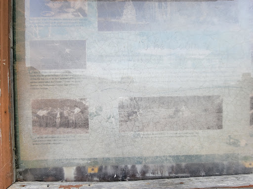 From the posted Cabin sign, "The Cabin was the hub of recreation activity during the 1930s and 40s at Wilder Ranch. While the adjacent Arena was used for rodeos and practice, the Cabin was a place to eat, drink, and swap cowboy tricks of the trade. The Cabin was built in 1932 by members of the Wilder family and their employees from wood scavenged from an old shingle camp. Each rock of the stone chimney was hand carried from nearby Meder Creek. In their zest to finish the job in a timely manner, the Wilders stack too many rocks before the mortar dried, and the entire chimney collapsed. Their second attempt was a success and this same chimney still...