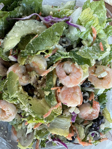 I ordered the Shrimp Avocado salad with everything and cilantro jalapeño dressing. There’s 2 different kinds one is a ticker consistency and the other is more creamy. I got the creamy dressing.