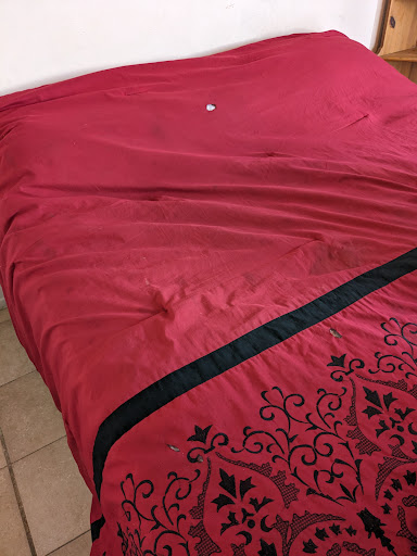 Read moreI booked online and only saw the 1st couple of pictures. I had stayed at, (what I thought was similar) places like this, but to my horror I was sadly mistaken. I will list my encounters in order of appearance... Upon drive-up, the parking lot was half filled with old broken down vans and RVs. Other half = UHauls. The RV's had homeless style plastic bags and trash all over the parking lot. Checking In: The old man, although nice, was extremely disheveled. My key to the room didn't work. The door had been previously broken into and the lock bondo'd into place. The room smelled of smoke. Like maybe crack smoke, and pee. Open light socket on the ceiling, smoke alarm ripped out exposing bare electrical wires. Rusty corroded old metal for all handles and hinges. Nothing closed right. No toilet paper, shower towels or soap. Unlockable, wide open bathroom window. Open holes in walls exposing old rusty plumbing. So I went to front to ask for toiletries... I got a 1/2 ripped apart, dried blood stained towel for the floor, and a smokey smelling towel to shower in. The shower drape kept falling off of the rod holder. A cockroach ran out of the rod after it fell. There were smaller roaches and droppings around the place. White and dark colored recent stains on the bed spread and pillow cases. The electrical sockets so old that anything plugged into them fell right out. Half of the electrical outlets simply didn't work at all. There was other people's hair in the shower, sink and all over the floor. I was told to stand on the bed to turn on the air-conditioner. Whe I asked why the air switch was so high up near the ceiling, I was told that it is to discourage people from using the air conditioner. While trying to sleep, I heard drunk (homeless type) people wandering around in the back rooms, yelling and singing till late hours. My belief is that this is one of those cheap motels that the government is placing the homeless in recent days and weeks, as described on the news lately. Some of the homeless type looked scary enough to be dangerous, in my opinion. I feared for my safety at night. That's all I can say, and/but if that's not enough I had to pay $150./night for...