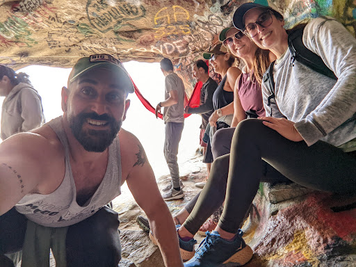Strong steep incline trail. You have options of walking around or over the rock formations. A few cool smaller caves along the way to the larger one with swings. It gets slightly sketchy where an anchored wire will assist you down a steep rock face and around the edge of a boulder. Ultimately there's a ladder that...
