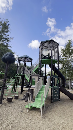 The playgrounds are amazing: big slides, climbing structures, swings, ball courts, and even little bridges and shaded pavilions. There are play sets for all ages, from toddlers to older kids, which makes it super family-friendly. I really like how creative the play areas are, using natural materials like logs and rocks to make it feel more adventurous.