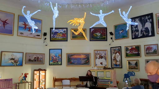 What a fun place! Every time you turn a corner, there's something new and interesting to see. There are three or four buildings and a beautiful outdoor space, all with varying types of art, from wonderful metal sculptures of zebras, crocodiles, flamingos (most of their heads will nod up and down slowly, kinetics!), and metal monkeys hanging from the trees, to... incredible stained glass everywhere, every bathroom completely different, every doorway completely different, every little detail attended to. Scrupulously clean, a terrific assortment of "stuff". Oh, I wanted the rocket ship so badly! and the granite fountains were superb. It's next to impossible to describe; I'd really suggest going there. Don't miss it - for a five dollar donation, you get the peaceful, friendly grounds, seating areas, free coffee (and decaf), ice water, and a few little munchies to enjoy while you sit in any of the numerous areas set aside. It feels like a place you could just walk around in all day long and never grow tired. Or, bring a book, look at the artwork, then enjoy reading in such a beautiful setting. A few things to consider: Hours are short. When we were there, the "museum" was open 1 pm to 4 pm, 3 days a week. The founder is on premises, and she's very helpful. There are a lot of docents. I mean, a lot. It's a bit annoying when, instead of waiting to be approached, they walk up while you're looking at a piece of art and enjoying it, then start telling you about the artist, where they're from, that they're self-taught, etc etc. I'd have preferred to be left on my own to wander unless I asked. The only other annoying thing (this is me, personally), was the music. I'm not a fan of music outdoors when I'm trying to relax or, in this case, enjoy the artwork. Even if the music is pretty cool R&B (and this was), I'd have liked it at least turned down by half. Otherwise, it's just intrusive, especially when you're enjoying the sounds of the fountains and the palm trees. Wander in and out of all the rooms. Make sure you keep looking up! They told us that more than 75% of the exhibits are new each year, and you're allowed to take photos with your cell phone (no cameras, no iPads, no video). Last, be sure to go into the room with the hanging dancers - the lights operate by handclap/noise, so it was great fun to stand with a dozen others trying to get them on and off. Cannot recommend this highly enough. If you're in the area as a tourist, or even if you live around Sarasota, it's well worth it. OH. Someone named Bilan Evans posted a one-star review here that kept referring to the "dusty old women" and "hags". I found that really annoying, particularly since my mother-in-law had looked up the reviews and thought maybe she wouldn't be welcome because she's elderly. He or she is supposedly a local guide, who closed his review all in caps with a warning that God was watching. I reported it as inappropriate, so hopefully they'll take it down, because it really was mean and demeaning to...