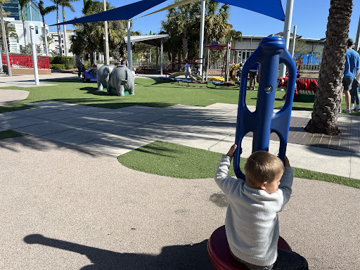 Sarasota has nice playgrounds, but this is probably my childrenās favorite. It is quite big, has a circus theme, and has lots of different options for playing, climbing, sliding and more. There are a few covered picnic tables and shaded seats in the playground area. Thereās also āgrassyā (astroturf) areas to sit on. The playground has shade sails to help provide some shade for the playing children and keep the metal equipment from getting too hot. Some misting fans are placed around to produce some cooling air during the hotter months. Overall, this playground is kept up pretty well considering the amount of use it gets. There are some attractions that always seem to be broken, but thereās so many other activities available here that it usually doesnāt matter much. There are a few downfalls to this playground: Itās really lacking in the number of swings available, with only two regular swings, and no baby swings at all. The size of the playground makes it a bit difficult to keep an eye on the kids, especially during busy times. The bathrooms arenāt always very clean, but seem a bit better the last couple of times we had to use them. The only other issue is that my children never...