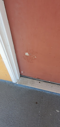 -The tile on the floor in front of the kitchenette was broken, creating a sharp edge, which easily could trip and/or cut someone. And the metal transition piece between the tile & carpet, was broken, sticking up and also very sharp.