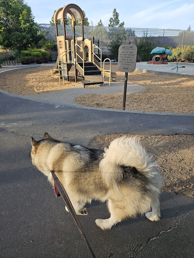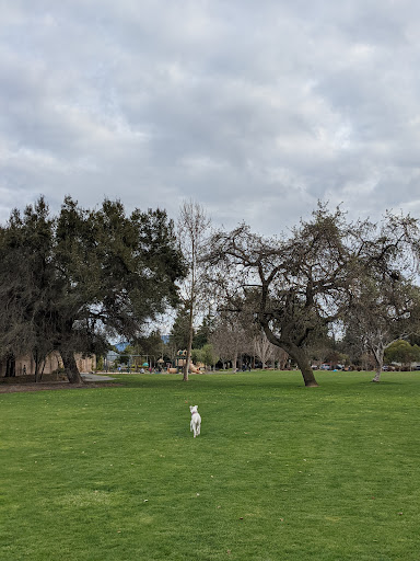 Serene, safe place with well manicured lawns sculpted with small mounds for added landscape interest. Walking path around the periphery, play structures off to the side. Picnic tables, drinking fountain and (a few) fruit trees. Many dogs congregate here in late afternoon/ early evening, and most run free. Owners are watchful of their dogs, and friendly, and most do not worry about their dogs running off (trees serve as natural barriers and dogs seem to prefer to play with other dogs.) Kids play, run, ride bikes & skateboard through here on the paths. Non-dog parents even bring their kids to meet some of the friendlier dogs regularly. A small tennis court is is in use most times I've been there in the afternoons. We've been here in the morning and the place is relatively empty. Because this is a smaller park to its twin, Kevin Moran (the 2 are connected by a pedestrian bridge iver Hwy 85), there are fewer people on this side and the place feels intimate, yet is sufficiently large to provide personal space if you wish it. Peace & quiet, or sociable conversations, at...