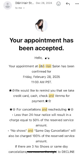Before the appointment, I got a tons of confirmation emails and reminders asked me to confirm I want to keep my appointment.
