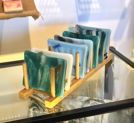 I was first attracted to the glass soap trays, then the leather purses, then the earrings, the hats, the soap and so much more.
