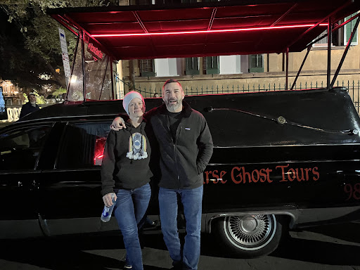 Our guide greeted us exactly on time. You have the option of several pick-up locations. We chose the one near Oglethorpe Square and it was extremely easy to find. On arrival, the guide took a group photo and we boarded the hearse.