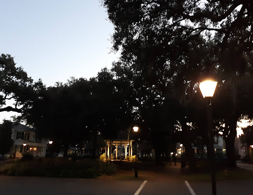 This is one of the most BEAUTIFUL Squares in ALL of Savannah, and I recommend EVERY.SINGLE.PERSON. visit this spot at least once in their lifetime. If you are from the area, you may already be aware of this magical square. If you are visiting Savannah, this is such a special spot. The BEST times, during the day, is early in the morning during sunrise and in the evening during sunset. The best times, during the year, to visit the Square is April-June & late August - mid-October. At sunrise, go to the Gazebo and sit facing East... As the sun comes up, the rays start to bounce off the glass and gold around the city, and it shines all around you. The light glitters and shines, making it impossible for you to NOT start your day with a smile. In the evenings, as the sun goes down and the gazebo is starting to become shaded (in the summer), the fireflies will start to dance. They flutter all through the flowers and bushes surrounding the area, joining the butterflies that are always there. The rays of sunlight start to bounce off the glass and gold again. All together, it makes you feel as if you are experiencing a moment of true fairytale magic. (whether fairytale magic is real or not, you'll definitely feel like it is in that moment) And You won't be...