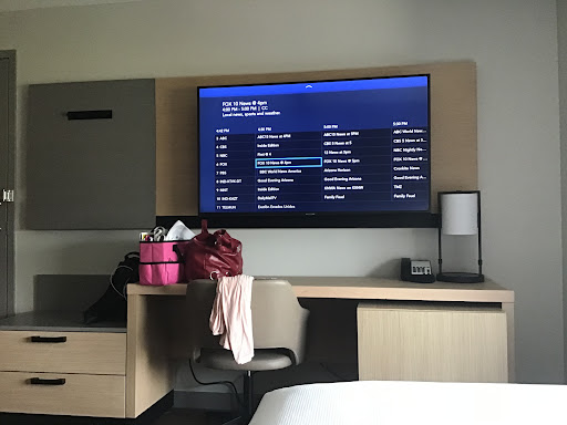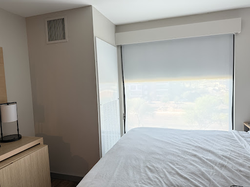 The A/C unit is installed in the corner of the room next to the bed (see pic) which is also odd, and it makes a lot of humming and rattling noise when it's on which is super annoying because it's like 5 feet away (and it will be on basically all the time because it's Phoenix). This is completely different than almost every other hotel I've ever stayed in, where the A/C is above the entry door and all you hear is the noise of a fan, because it's just running coolant into the room from a hotel-wide A/C system on the roof or whatever, so there's no compressor rattling noise. Usually only cheap motels have the entire A/C unit (including the compressor) in the room next to the window.