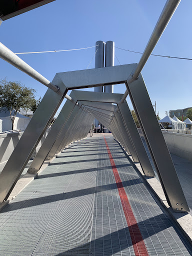 I've often seen this bridge driving by, so it was nice to finally take some time to explore it. There's accessible parking at South Bridge garage and/or on the nearby streets. From the garage, it took me about 10-15 minutes to get here. The sidewalk is paved, and the bridge itself is wide and concrete. Standing there, you get a view of the canal, and in the holidays- you get treated to some festive decor; there's even a Christmas tree on the bridge plaza area. At the side of the bridge, there is some wall artwork and Soleri bells, and there's tall metal columns that hold the bridge. Crossing it- it's only a 5 or so minute walk to then get to the...