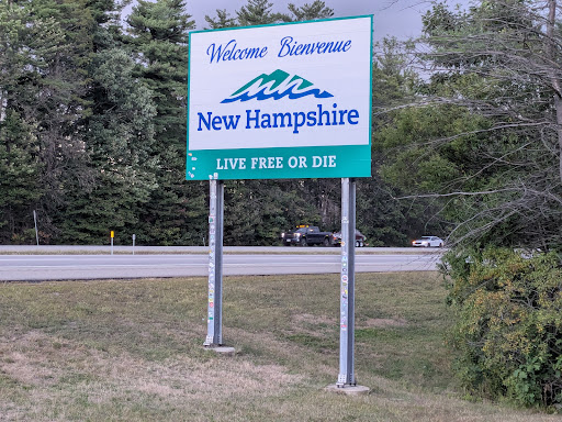 There are two different locations and entries for this sign on Google Maps. I, a New Hampshire native, born and raised, actually reviewed the "Welcome to Massachusetts" first 🥇 before I now make my commentary about this sign. Sad 😢! I hope I do not have to do Basil Faulty impersonation of self chastisement to make up for it! Anywho! Since French is the second 🥈 most spoken language in NH, though I feel that Spanish would give French a run for its dinero, and NH wishes to welcome tourists from Quebec, especially now, that is why "Bienvenue" is on a lot of NH welcome signs. Bienvenue means "Welcome" in French. Though if you were in Quebec, you would hear 🙉 it more after. Merriam Webster online dictionary says it is a noun and the obsolete definition is " an entree fee demanded from a new 🆕 worker from fellow workers ". The sign is easy to visit at the Seabrook Rest Stop. People have been putting stickers on the signs legs 🦵. If I am using Google Maps for directions, it tells me "Welcome to New Hampshire!" in area...