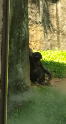Africa side with a few viewing areas (glass). This consistently has been one of the best exhibits for viewing at the NC Zoo (for me anyway) in that one of the gorillas is usually against the glass. They don't seem bothered or concerned with people.