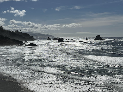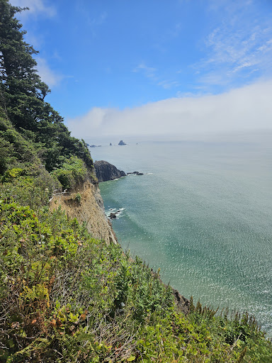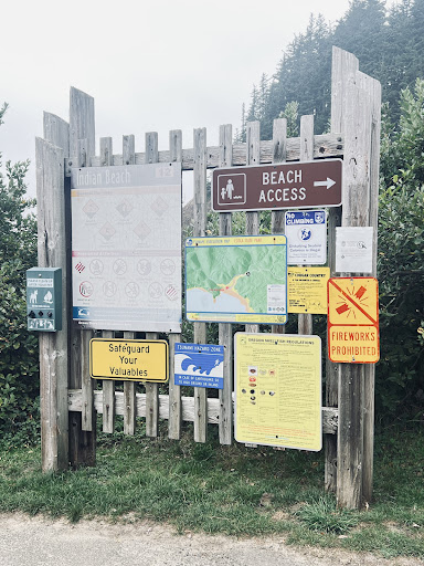 Read moreThe speed limit on the road to the day use area goes from 20 mph to 15 mph as you ascend. You will first approach a large set of overflow parking, pass those and see if there is any parking closer to the beach entrance. Oregon plates pay $10.00 per vehicle and out-of-state vehicles pay $12.00 and it is credit card only. There are two outhouses by the beach entrance/start of trail. The steps going down to the beach are very large steps and the beach that you approach is very rocky before you approach sand. There are two creeks, Canyon Creek and Indian Creek and my toddler loved play...