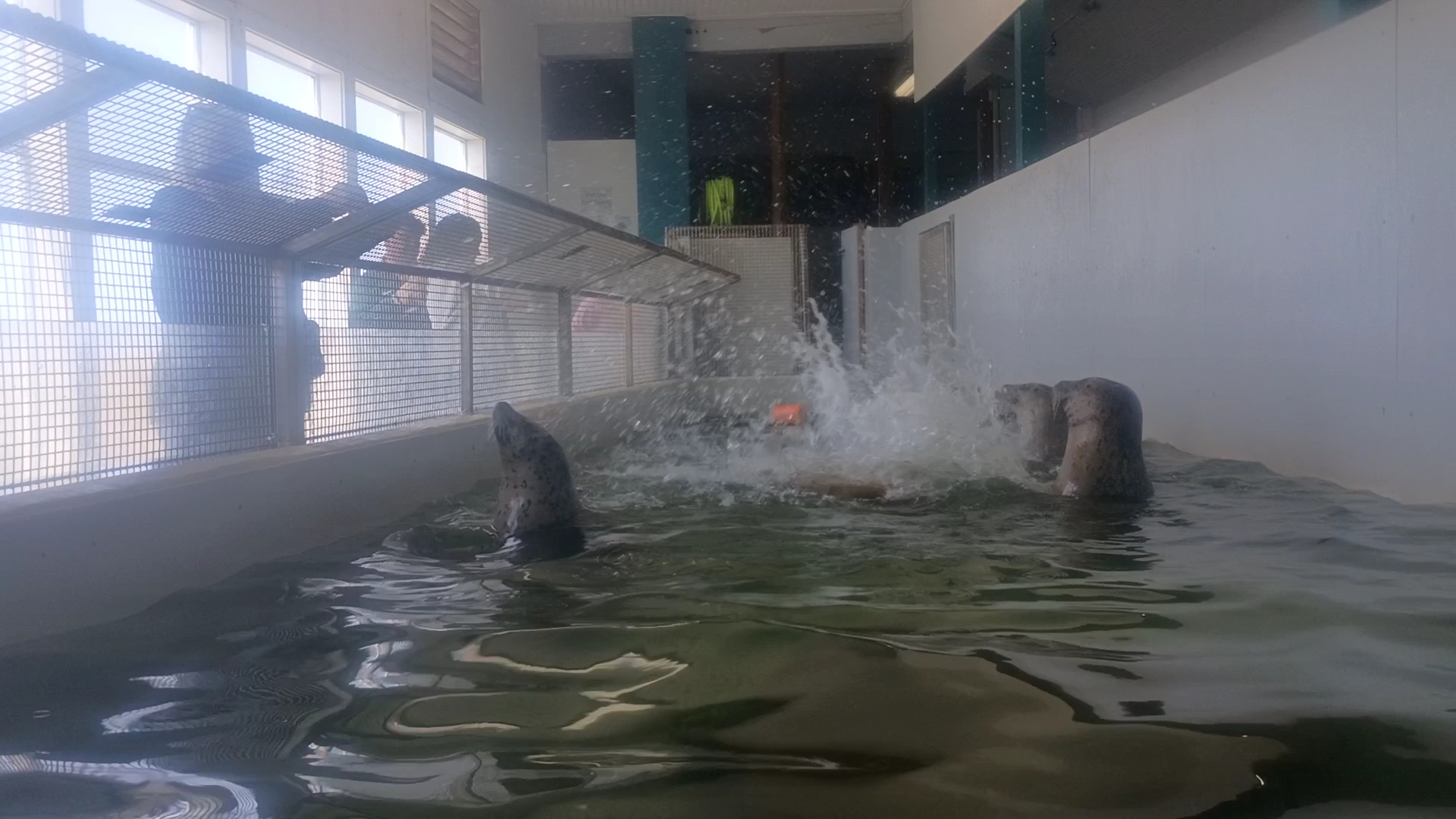 The seals, there are 11 of them by the way, don't get fed during the summer by the employees or anyone, they only get fed by the customers who come in and buy food to feed them, however the seals are fighting over who gets the fish, so obviously this is not enough for them. There tank is very small and looks very green and murky, I feel bad for these seals.