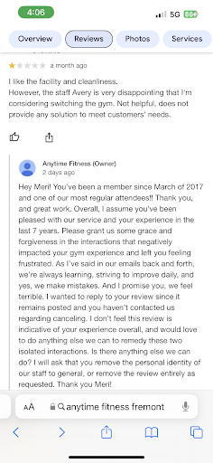 I recently found out about the ability to access another popular gym nearby at half the cost of my membership here. of course wanting to save money, I gave it a try (also primarily because the other gym has a sauna). the experience there was incompatible with my daily experience at this location. I still kept the other membership to use the sauna when needed but continue to use my this location for my primary workouts!