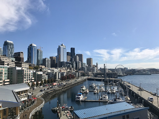 The panoramic sweep of Elliott Bay from here is just breathtaking. You get a perfect, elevated view of everything that makes the waterfront iconic: the Great Wheel lighting up, the boats resting in the marina, and the downtown skyline glittering as the sun goes down.