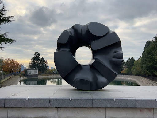 Read moreNoguchi's Black Sun is one of the finest sculptures I have ever seen or touched. Its position and balance on the plinth is serene yet somehow threatening, as if it rolled to rest here by chance. Huge in mass, one can imagine it even larger, as a small part of an unknowable whole. Picture it like a vertebrae of some anthropomorphic granite machine, or even a diagrammatic section of a churning passage through space filled with swimming creatures. It's an immense sculpture and you'll likely be inspired here with your own tangents on a quiet sunset with the Olympics in the background. Where did this...