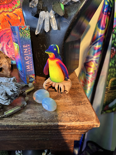 Read moreBurgandy not only paints stunningly beautiful pieces, she is also an absolute GEM of a human being! My fiancÊ and I were exploring the pier and were drawn in by the mesmerizing colors. As we walked in, Burgandy was there actively painting a new piece. We were greeted with a warm smile and hello, and Burgandy handed us some special glasses which make the paintings appear 3D. As you look at the paintings, the colors dance and change with the different LED lights. We had a nice long chat and she explained the science of how her paintings interact with the different wave lengths of LED lights, and she shared a bit of her story that lead her to start painting in this style. We were only able to purchase a few (BEAUTIFUL) post cards at this time, but we absolutely plan to purchase a few larger pieces in the future.
