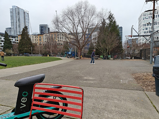 Nice park. The half court basketball court usually has guys showing up about 3:30pm every week day in spring thru summer to play. They have public bathrooms if you need that the city keeps pretty clean. There are a couple of tables off the ball court with chairs and two pick nick tables on that side of the park on a gravel trail under the trees. The play ground has a jungle gym set up and a "stay out of the lava" game kids can play on it. For little kids they have a couple of old school bouncy horses, small climbing object and sand box. The sand box has a mechanical shovel that is operated with two handles to move sand. A paved trail goes around the park with a baseball sized grass space in the center. The grass field is too muddy to use in the winter and after more than 4 days of rain but in the summer can be used for things. I have seen groups that meet for yoga, hula hoop, thi che, and other activities in the summer. Right beside the park is the Cascade Pea Patch Garden (it takes years on the wait list to get a spot). The Cascade/South Lake Union Center building has programs for kids in the summer. Currently three homeless people live in tents in the corners of the park but they keep the area clean, stay out of the way and don't...