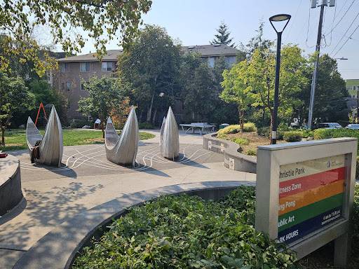 Read moreThere is an awning surrounded by some low-lying plants, a small concrete floor with a basketball hoop, and a bench. This is neither a good nor a bad place. It is perfectly serviceable. A certain Pat Martin of Mercer Island recommended the name "Christie" based on the exploits of James Christie, the leader of the Press Expedition. This was not the Christie of auctioneering fame. James Christie was normal but had some flaws. This park is also normal and...