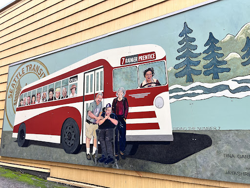 Definitely take a look at the cool mural of the 7 bus...
