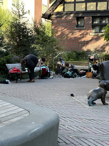 For the last 10 years I have seen the development of this park as it has become a focal point for the actual residents of the surrounding area regardless of their socioeconomic standing. It was once a barren patch of brown and is now a tidy modern refuge. I will admit that some of the more noticeable people, often due to any combination of public drug use, mental health crisis, lack of housing, and every other omnipresent social ill are present here. They can be very messy and leave a trail of garbage and tweaker treasure. They are the outliers whose pictures give outrage media their clicks but they are a small, highly visible minority. This park has a water fountain and water bottle station. Coupled with nearby hospital bathrooms, mental and substance treatment clinics, the water provides a requirement of life no longer free at starbucks to the destitute. It is the regular faces seen for teatment amongst the neighbors walking their dogs that have made this special place and given those looking to recover a sense...