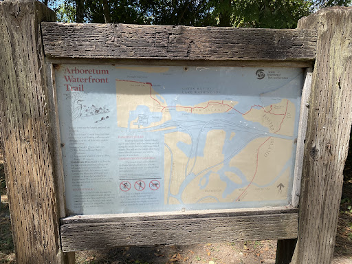 Foster Point Trail meanders through Foster Island and Marsh Island and connects Washington Arboretum with East Montlake Park. It's easy to notice the trailhead at the north end of the Washington Arboretum loop.