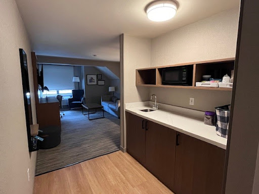 Read moreI stayed in a large suite here. It had a nice bathroom with soap and shampoo dispensers in the full-size bathtub/shower. There was a small closet with a standard hotel safe. The living room had a couch, a very large desk/counter that had updated Ethernet wiring and power outlets for a laptop computer, and a big-screen TV. There was a kitchenette in the living room that had a small refrigerator (hidden inside a cabinet for looks), a countertop, and a small sink. I think there was a microwave, but don't recall.