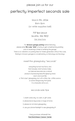Read moreI have been a loyal customer since the very first factory and store opened in Madrona, where I live. I've bought at least 50 of their glassybabys for gifts over the years. I've always hesitated a little because the owner can be quite rude (the staff at the local coffee shop all avoid her!) but today was the final straw. I purchased 8 glassybabys at their 2nd sale online that I intended to use for gifts for my real estate clients. I was sitting across the store at the local restaurant when I did it. I walked across to the glassybaby store to ask for some gift bags. They refused to give me any. I asked to pay for them, they refused. I called their customer service and they refused. I asked for a refund since I don't want to give these as gifts without the gift bags. They refused to even give me a refund. There is no mention of no gift bags included with the second sale. I'm not surprised because the attitude of the owner and company has always been edgy but this is too much. Thanks a lot glassybaby for treating a loyal customer like this. And please note - you should add to your second sale website that there is no mention that you will not provide gift bags. Photo attached showing there is no mention that they will not provide gift bags or are not "allowed" to...