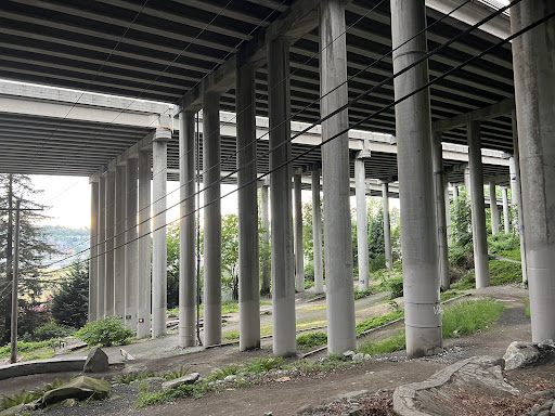 Cool park under the interstate off of Exit 168A on I-5 Northbound just outside the Seattle city area. Lots of space and several benches throughout the park. Plenty of trails to walk. There are off-leash dog areas fenced off for your doggos to run freely. I don't recommend wearing sandals through here. There is usually broken glass on the ground in some areas. This place is also a area for people to practice their mountain biking skills. There are some flat areas but this place is on the side of a hill so there are steep areas to look out for. I did see like 2 picnic tables towards the main entrance to the park at the bottom of the hill. Not really much parking available. Also be careful walking through here after it rains or during rain. You can accidentally side down the muddy areas if you are not paying a attention. Last night I put a fire out at this park. A homeless disturbed man was yelling to himself then lit an abandoned couch on fire close to wear I parked my car. I called Seattle Fire Department and was able to put the fire out before they got there. A random good Samaritan came out of nowhere with a shovel and helped me put it out. 2 minutes later SFD arrived. Not a safe place after dark. I do not recommend walking through here alone at night without a friend, dog, flashlight of some kind or self defense weapon to protect yourself from some of the crazy people here. I was on my phone laughing at memes and this homeless person said "WHAT YOU LAUGHING AT!" Then threw something at my car. I got out and shined my flashlight at him and that's when he lit the couch on fire and walked away after he grabbed all his personal stuff. The day time is mostly safe. At night there are some very dark spots where you only see darkness. Avoid those areas. That's where someone people at night talk...