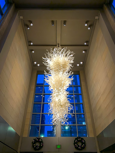 This performance space is located in the second floor of the NE corner of Benaroya Hall. There are rows of 30-35 seats with two doors and aisles down the side making the entrance to the middle tricky. The acoustics are quite incredible with a small stage and sound boarding behind with a directional sound ceiling. The space is intimate and perfect for seeing a musician or singer by themselves. The lobby is adorned with a Chihuly glass hanging piece and marble floor complete with two bathrooms down the hall on the same level. There is a dedicated elevator and stairs for access.