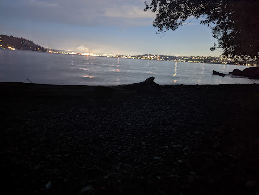 There's a few spots to access the water for kayaking/ paddleboarding/ swimming here. It's a VERY nicely protected part of Lake WA to do so. It's only half a mile by water to reach Seward Park. It's not a big open access to the water. There are a few small tree breaks.