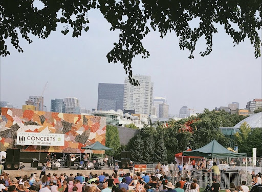 Design and Features: The Mural Amphitheatre is named for the striking mural that serves as its backdrop. Created by artist Paul Horiuchi, the mural is an impressive mosaic that adds a splash of color and artistic flair to the venue. The amphitheater itself features a grassy, sloped seating area that can accommodate a large audience, providing an intimate yet spacious environment for enjoying live performances.