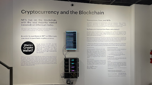 My friend and I saw the the museum on our walk down the street and decided to go in. I was stoked to go in because I personally am very interested in NFTs but have very surface level knowledge on the subject. Upon entering we saw the only employee face timing a buddy of his. We thought him not hanging up when we walked in was a little goofy, but we just walked around looking at the different pieces.