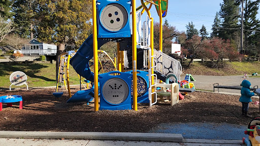 Good playground and small field! It's pretty tucked into the neighborhood so I feel like it's safe enough. I've never seen any campers or needles. There are two bucket swings, and a tot structure with a short slide for the younger kids. There's a big structure for the 4+ year olds too. There's a sandbox off on one side near the tot structure. There's also a merry go round, a hoop and pavement area, and people have donated lots of trikes/small bikes, and toy cars. It doesn't have a public restroom. There's a few parking spots next to the preschool, and There's a co-op preschool that uses the playground for their recess, but I've never had a problem using the area for toddlers...