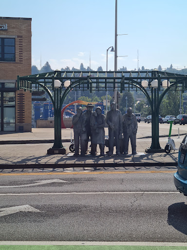 Waiting for the Interurban, also known as People Waiting for the Interurban, is a 1978 cast aluminum sculpture collection in the Fremont neighborhood of Seattle. It is located on the southeast corner of N. 34th Street and Fremont Avenue N., just east of the northern end of the Fremont Bridge.