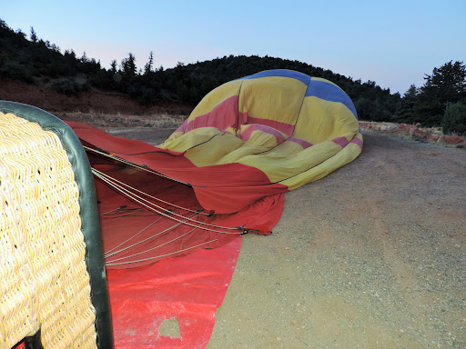 we ended up landing somewhere else than were we took off, but from what I understand that is normal that is how the wind works, he kept us and his crew informed, they were waiting for us when we landed, and we were offered water bottles while they packed down the hot air balloon, we were then taken to a nearby location where they pulled out a table and server champagne, juice or mimosas, I am sure water was also available then, Casey told us the tradition behind toasting after each flight, we didn't stay there long before we were shuttled back to their offices, during our drive back Casey talked out the sights, hikes and points of interest in Sedona, and even recommended where to have our breakfast. if I have to complain about something it would be that it was really hard to hear him further back in the vehicle.
