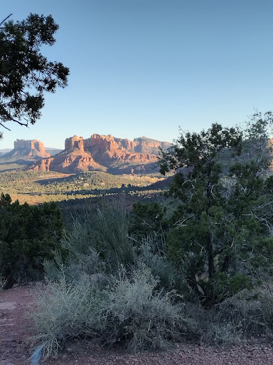 Read moreThe trail to the west ends on top of a solid rock plateau about a quarter to a third of a mile from the parking lot. This spot has some gorgeous views down into a valley and Oak Creek, then sweeps up the other side to some of the spectacular red rock pentacles that Sedona is known for. It is a great spot to sit down and soak in the sun and the view. I am somewhat mobility handicapped, but with a trekking pole and a bit of aid from one other person, I was able to enjoy the adventure. That person also packed a compact camping chair in for me. It was such a treat to sit there and soak in the fresh air, beautiful scenery, and sunshine.