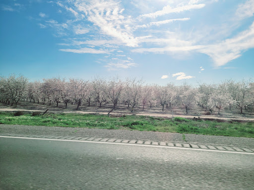 Almond trees everywhere! It’s very cool to see an almond tree with clusters of them growing if you’ve never seen one. I drove down from Fresno to Hanford and passed a least a dozen almond and pistachio tree farms. Had to stop n take pics and of course try a raw...