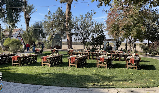 Aesthetically, this beautiful outdoor venue sells itself! The entire property offers gorgeous outdoor reception options, with a large dance floor, a bar, and a porch with nature all around that will take your breath away and checks all your boxes. The one you find yourself saying, “This is the one.” The one where you can truly envision the elegant party with a classy touch of string lights in the garden for dancing and celebrating the night away with your family and friends. My event was during the mid-summer when the Fresno area reaches the three digits but the breeze and shade on site made it cool and the perfect spot.