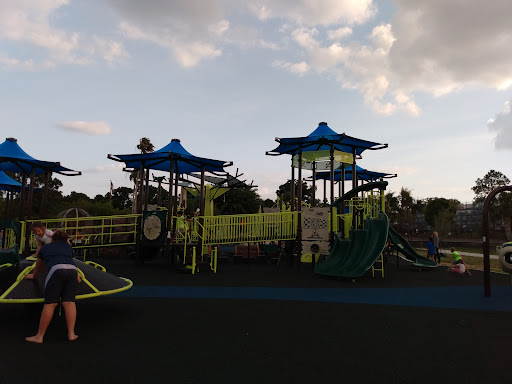 One of my favorite Parks so far to take children to. It is right next to Home Depot, right next to lake Seminole, right off of Park boulevard. It's pretty easy to get to pretty easy to find. One of the largest playgrounds I've seen so far. Lots of stuff there for kids to be entertained with. Lots for them to do. Slides everywhere, swings everywhere, a giant jungle gym shaped like a treehouse type thing and another one shaped like a pirate ship. They have small stuff for the little ones and bigger stuff for the bigger ones. The restrooms are very big and extremely clean and well kept. There's a small DOC for canoes and kayaks. There's also a boardwalk that overlooks the water. There are three large pavilions. Good place to have a family get together, barbecue, birthday parties, etc. There are hidden games in all of the jungle gyms like the treasure hunt. I can't really say enough about this place if you've got kids and you want to take them out to have fun this is a place to go for hours and hours of entertainment. Large fields to run around in. Lots of parking. The city is Seminole did a really good job...