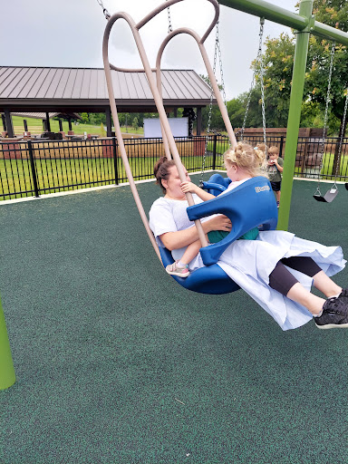 Read moreThe playground is nice and new. It's definitely geared toward older kids, though. While there are a couple of swings and a smaller piece of toddler-oriented equipment, my 2.5 year old was quickly bored and frustrated at not being able to get up to the larger slides; my 5-year old was not tall enough to do some of the climbing required for the main equipment. The zip line is also for older kids. The main equipment is labeled for ages 5-12 but I would skip for kids younger...